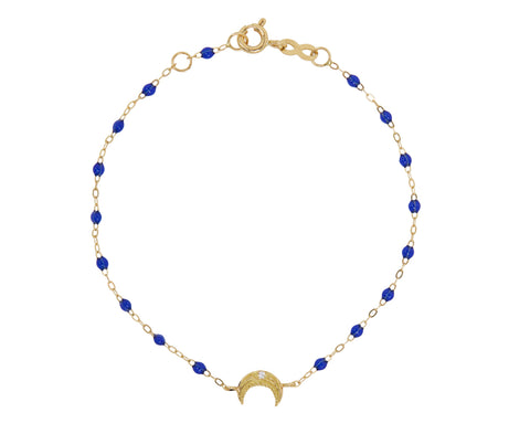 With its stylish, playful vibe, this Gigi Clozeau bracelet is perfect for the person with a cheeky sense of style. The 18K yellow gold and blue resin beaded bracelet has an 18K yellow gold and diamond moon charm set directly at its center. It closes with an 18K yellow gold spring ring clasp to create the perfect addition to your bracelet stack.