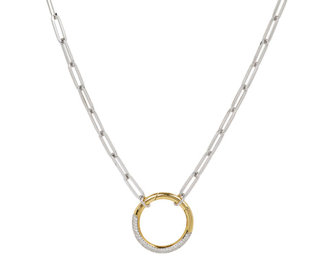 Add your favorite pendant to this modern, minimal Foundrae chain. The 18K white gold classic fob clip chain links surround the large 18K yellow gold and diamond annex link. Open the annex link to create the perfect pendant for one or more of your favorite Foundrae charms.