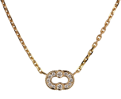 With its geometric, modern design and striking sparkle, this Viltier necklace will be a future heirloom. Hanging from the center of the adjustable 18K yellow gold chain is a diamond encrusted 18K yellow gold pendant. Representing two creative minds unifying in artistry, this necklace looks stunning whether worn alone or layered.