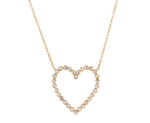 Flirty and feminine, this minimal and modern necklace from Zoë Chicco is an alternative to the ubiquitous heart pendant. The open heart pendant of 14K yellow gold and white diamonds hangs suspended from the center of the adjustable 14K yellow gold chain. Layer this with your other favorites or wear it on its own for a bold, statement making piece.