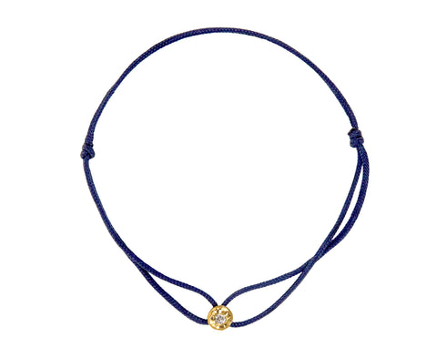 With its playful elegance and easy-to-wear style, this Octavia Elizabeth bracelet lends itself to any jewelry collection. The adjustable navy nylon cord features an 18K yellow gold charm set with a round white diamond at its center. Wear it alone, or mix it with your other favorites.