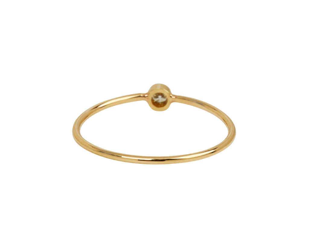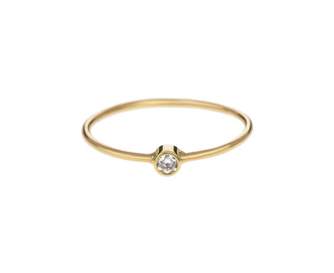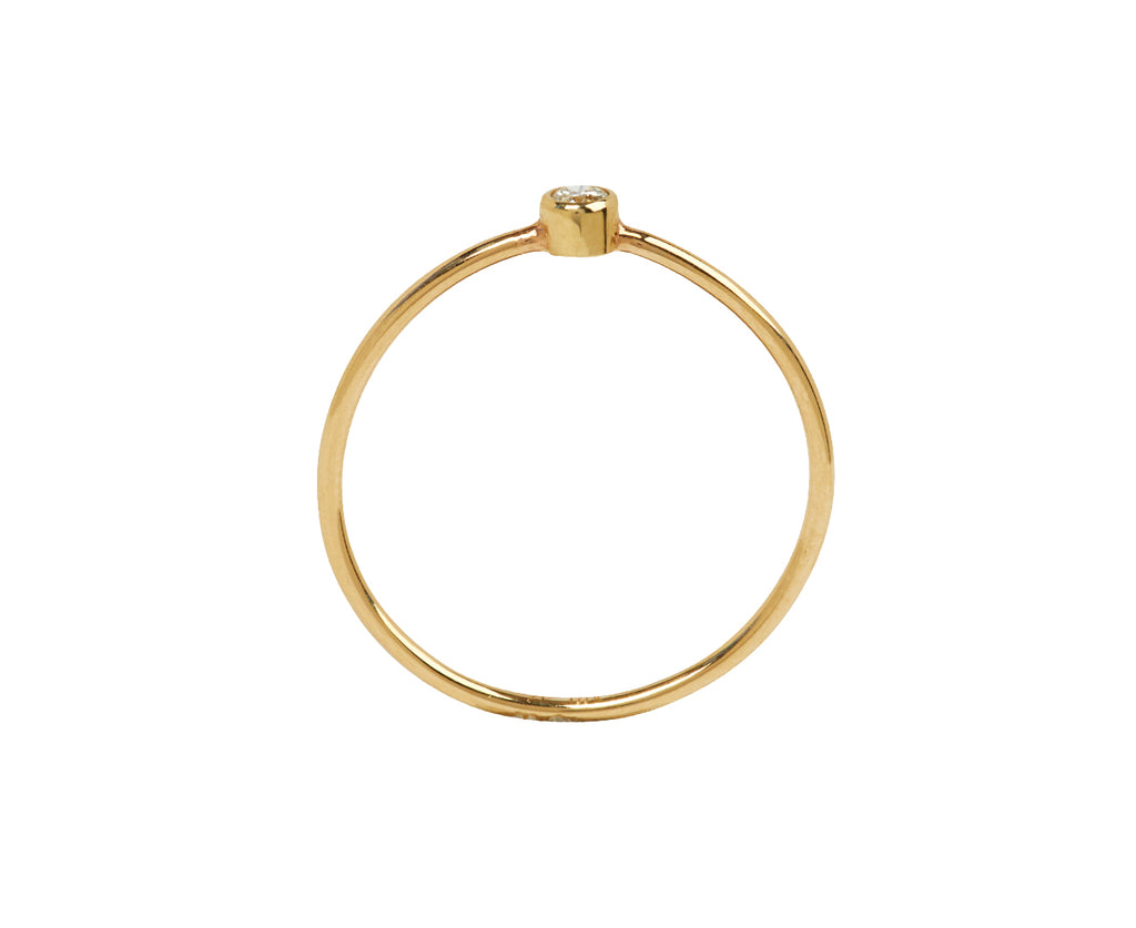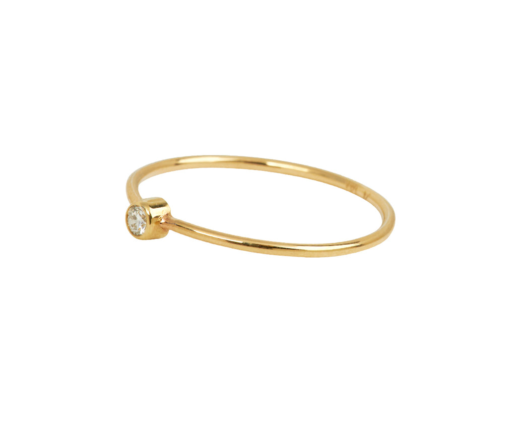 With its feminine elegance and perfectly understated style, this Zoë Chicco ring is an instant classic. The rounded band of high polish 14K yellow gold is adorned with a shimmering bezel set (.05ct) white diamond at its center. Subtle and sophisticated, this is a perfect piece to commemorate a commitment ceremony, promise or engagement.