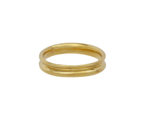 With its earthy, asymmetrical design and rich, warm toned gold, this Ten Thousand Things band exudes a timeless sophistication. The polished, buttery 18K yellow gold band has a two-tiered surface that sticks out in opposite directions and widens slightly along the finger. It is a modern, elegant alternative to the traditional band.