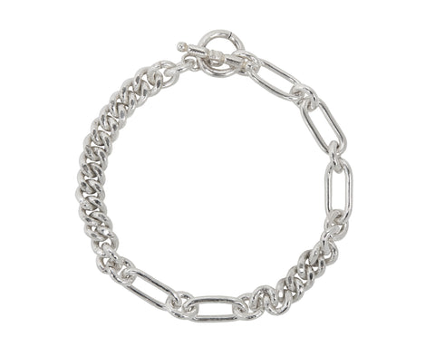 Elegant and earthy, this Tó Garal bracelet is a gorgeous composition of highly polished sterling silver links. Perfect worn alone but ideal for layering with your other favorites. It fastens with a sterling silver toggle clasp.