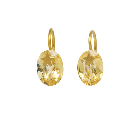 Perfectly vibrant yet subtle, these Marie-Hélène de Taillac earrings have a sweet, easy-to-wear vibe. The oval yellow citrine connect to gracefully curved 22K yellow gold ear wires by a tiny, 22K yellow gold star piercing the stone.