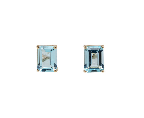14K yellow gold and blue topaz stud : 5/16" x 1/4"