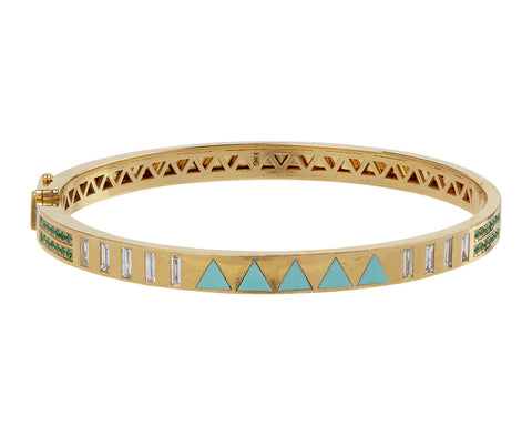 Emerald, Diamond and Turquoise Juju Triangle Inlay Bracelet