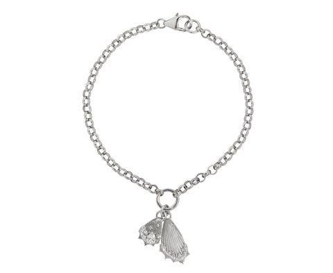 Sparkling and statement-making, this Foundrae bracelet is a minimal, modern masterpiece. The 18K white gold medium belcher links connect to one another to create a continuous strand. Dangling from the sister hook closure are two 18K white gold and diamond butterfly wings. Whether you wear it solo or layered with your other favorites, the look is as style-defining as it is contemporary.