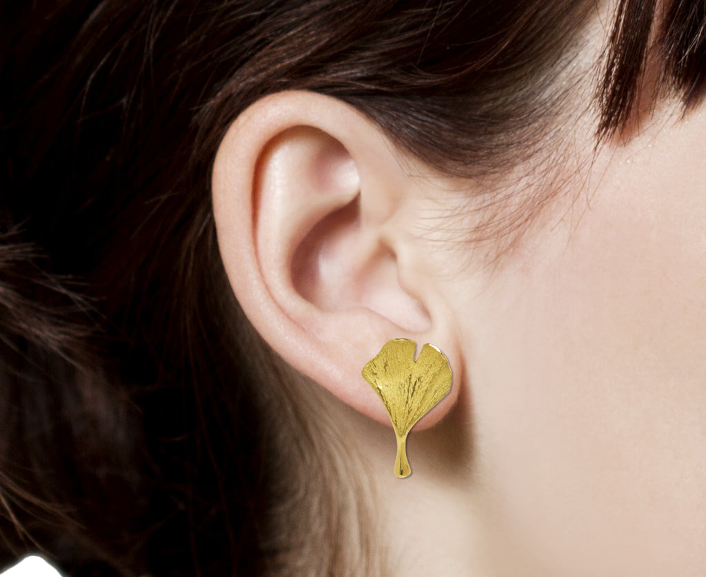 18K yellow gold ginkgo stud : just under 7/8" x just over 1/2"