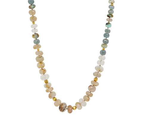 Rutilated Quartz, Peruvian Opal and Topaz Beaded Necklace