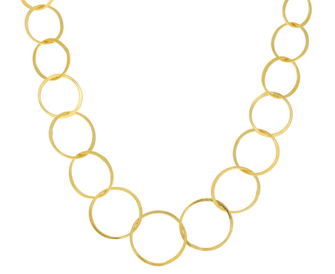 A statement piece at an incredible price, this necklace will complement your wardrobe year round with its warm, golden color. Graduated circles of gold vermeil interlock to form a flexible, fluid chain. A perfect length to go with everything from a cocktail dress to office wear, it adds instant sophisticated style.