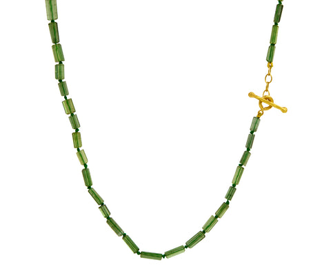 Add a pop of earthy color and bohemian elegance to your collection with this Cathy Waterman bead necklace. The strand of tubular green tourmaline beads creates a necklace perfect whether worn alone or layered with your other favorites. It fastens with Cathy's signature 22K yellow gold toggle.