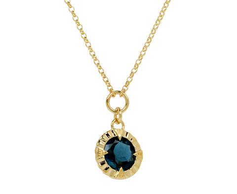 Stunning in its regal tone and modern design, this Foundrae necklace will add a sweetly symbolic vibe to any layered look. The round, faceted London blue topaz is set at the center of the 18K yellow gold compass halo. It hangs from the center of the thin, adjustable 18K yellow gold chain.