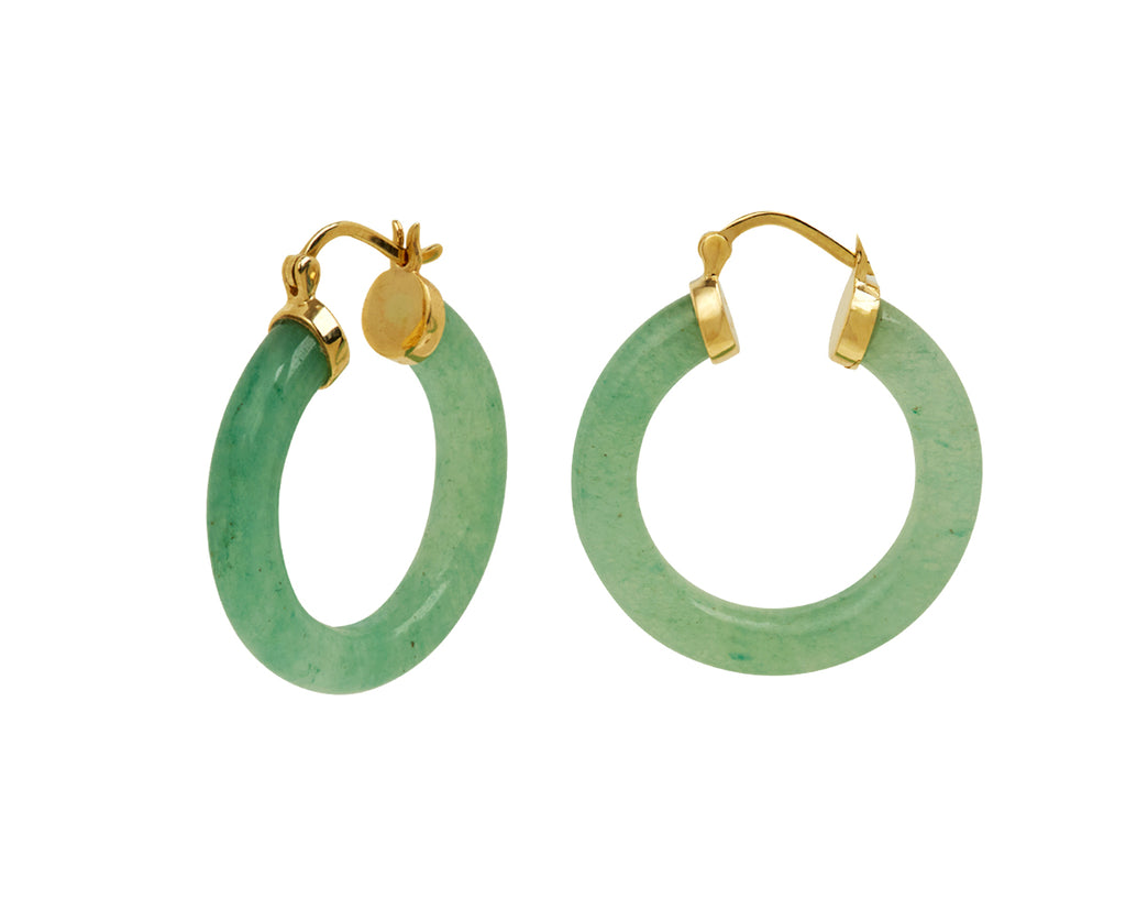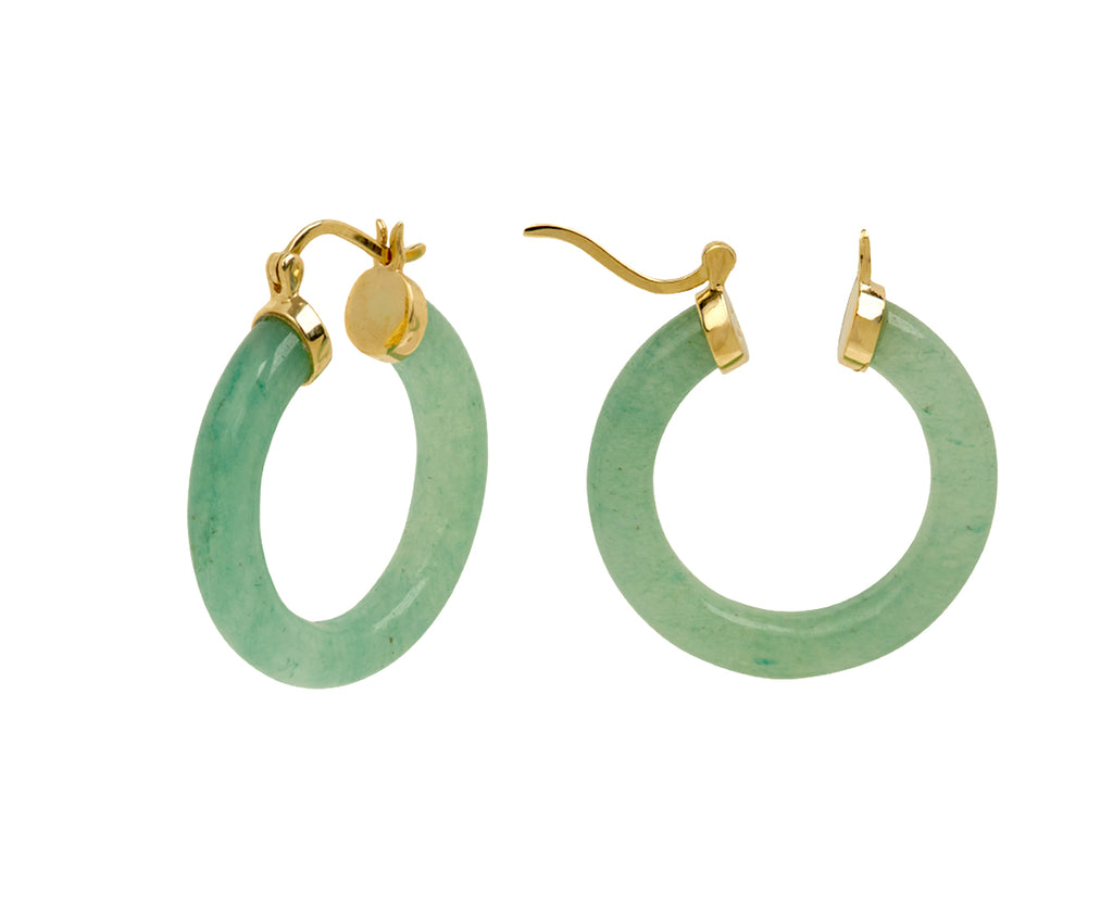These sculptural bright toned Mateo earrings can be your new go-to hoops. Bold enough to make a statement and versatile enough to be your everyday earrings. The jade hoops are capped with gold and connect to 14K yellow gold post backs.