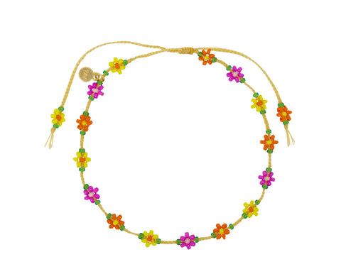 Fun and cheerful, this Tai bracelet is the perfect gift for yourself or a friend. The yellow nylon cord is accented with pink, orange and yellow daisy clusters. Festive and perfect for everyday, wear this bracelet to add a pop of color and playfulness.