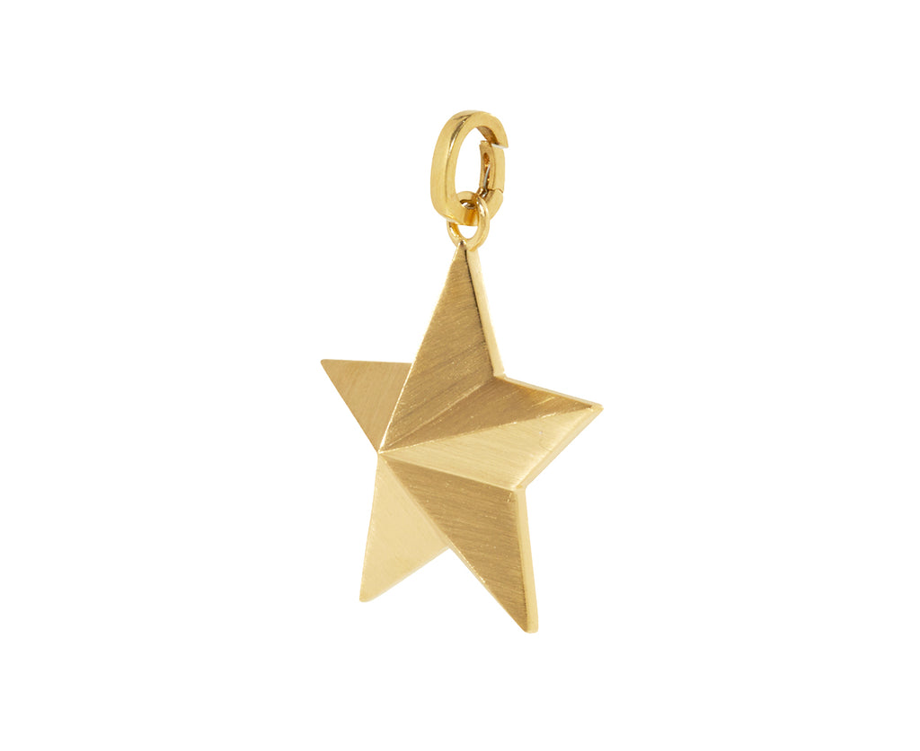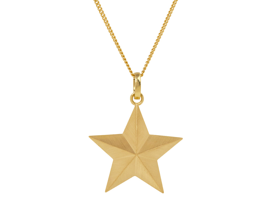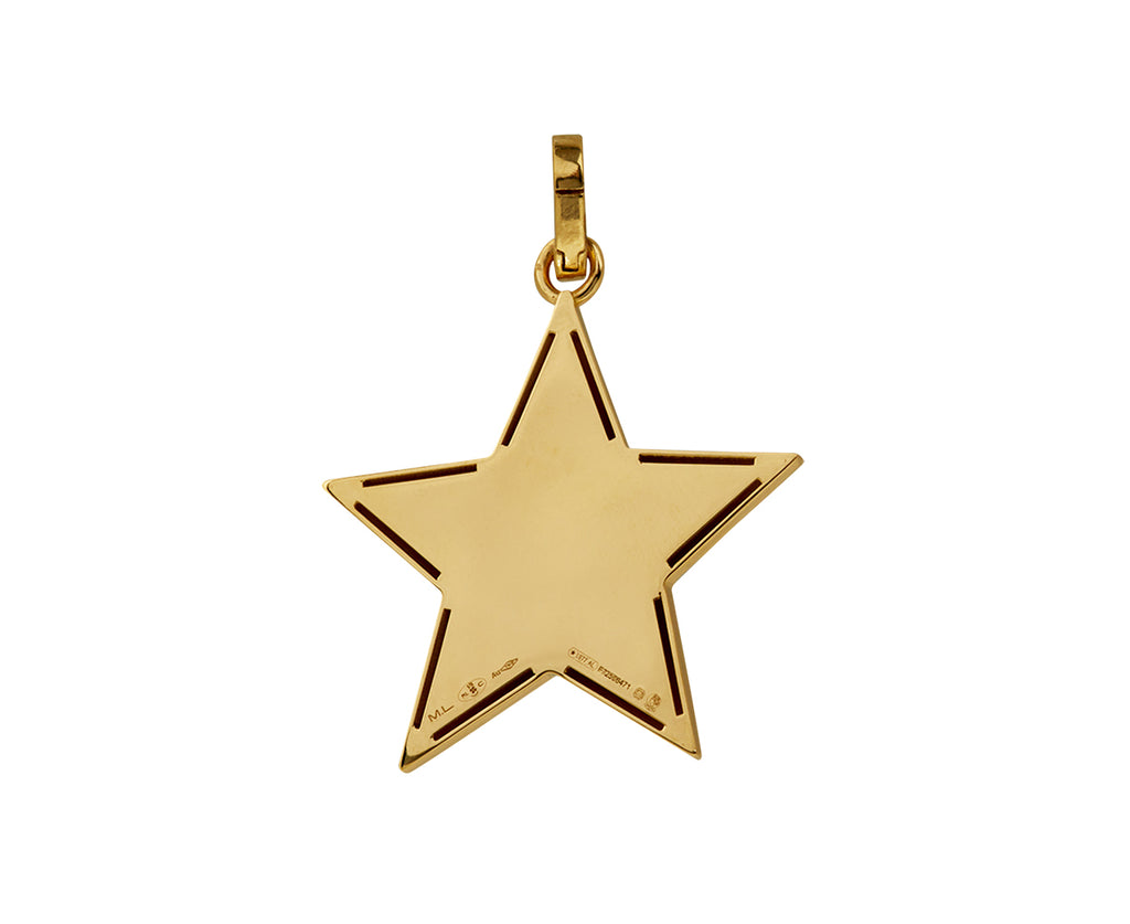 With its lightweight feel but substantial design, this Marie Lichtenberg pendant adds a pop of dimension whether worn alone or clustered with your other favorites. The three dimensional, matte 18K yellow gold star is hollowed out and backed with a sheet of 18K yellow gold. It connects to the 18K yellow gold push clasp.