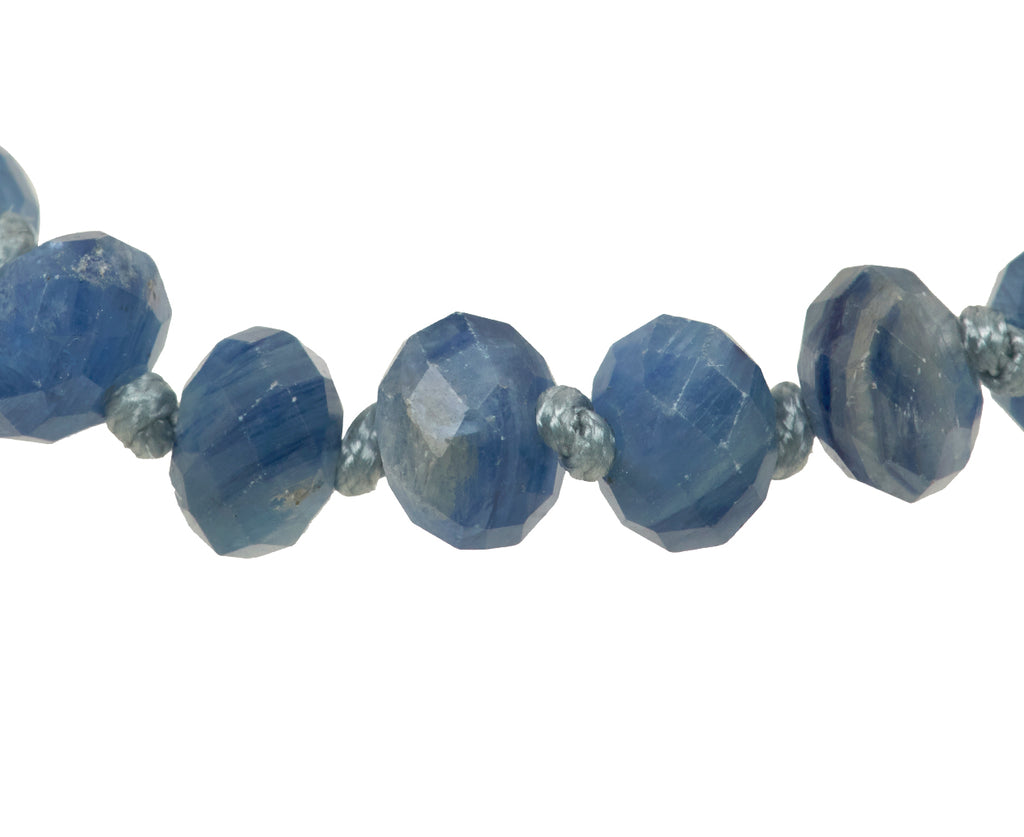 Captivating in its straightforward design, this Joseph Brooks bracelet has a wear with anything quality you will love. The faceted round beads of kyanite are knotted along the blue nylon cord to create an adjustable bracelet. This stone is believed to help the wearer find love and provides the strength needed to be open, honest and trust.