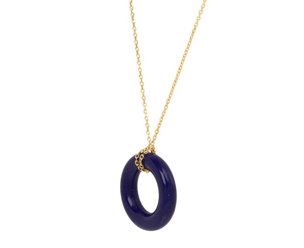 Wear this Mateo necklace as a soft, modern addition to any look. Wrapped in the center of the adjustable 14K yellow gold chain is a smooth lapis donut. Alone or layered, it adds a subtle sophistication to any look.