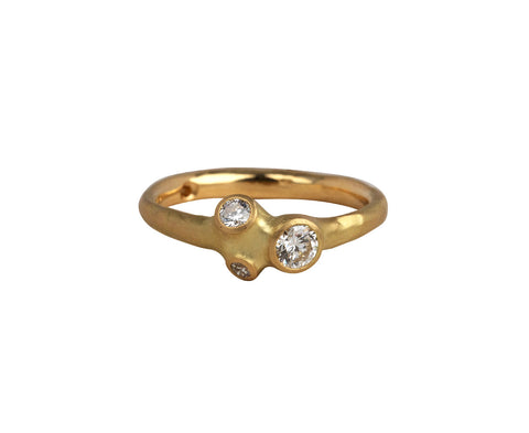 With its sculptural earthiness and asymmetrical design, this Johnny Ninos ring has a modern, feminine style. A cluster of sparkling diamonds, some small and some large, are bezel set and nestled together at the center of the 18K yellow gold band. As stunning as it is edgy and contemporary, it also exudes a confident sense of style.