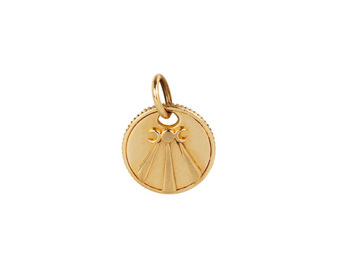 With its graphic design and warm toned gold, this Foundrae mini coin will become your everyday talisman. Depicted on the front of the 18K yellow gold are the motifs from their Mind, Body and Soul collection. The 18K yellow gold baby medallion hangs from an 18K yellow gold bale and is perfect hanging alone or alongside any of their other medallions.