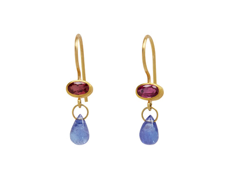 Mis-Matched Ruby and Tanzanite Apple and Eve Earrings