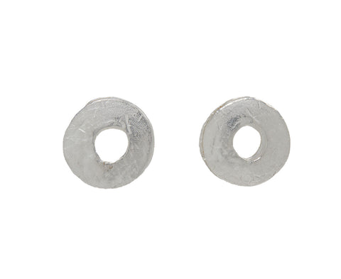 With their fluid elegance and quiet distinction, these John Iversen moon stud earrings are a stylish option for everyday. The slightly concave dimensional discs of sterling silver have a subtle shimmer and hand-wrought texture. They connect to post backs making them a perfect option for the jewelry lover who is just starting to build their collection.