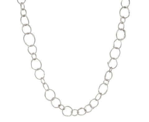 Bold and sophisticated, this Disa Allsopp necklace is a striking, modern alternative to the traditional silver chain. Each link of hand-hammered sterling silver is organically shaped and different than the next to create the continuous necklace. Alone or layered with your other favorites, it adds an earthy elegance to any look.