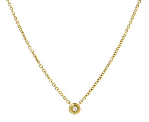 With its hint of sparkle and warm toned gold, this Octavia Elizabeth necklace is an understated, easy-to-wear take on the traditional diamond pendant. Hanging at the center of the 18K yellow gold chain is a round, white diamond set in the thin 18K yellow gold round pendant. Perfect alone or layered with your other favorites.