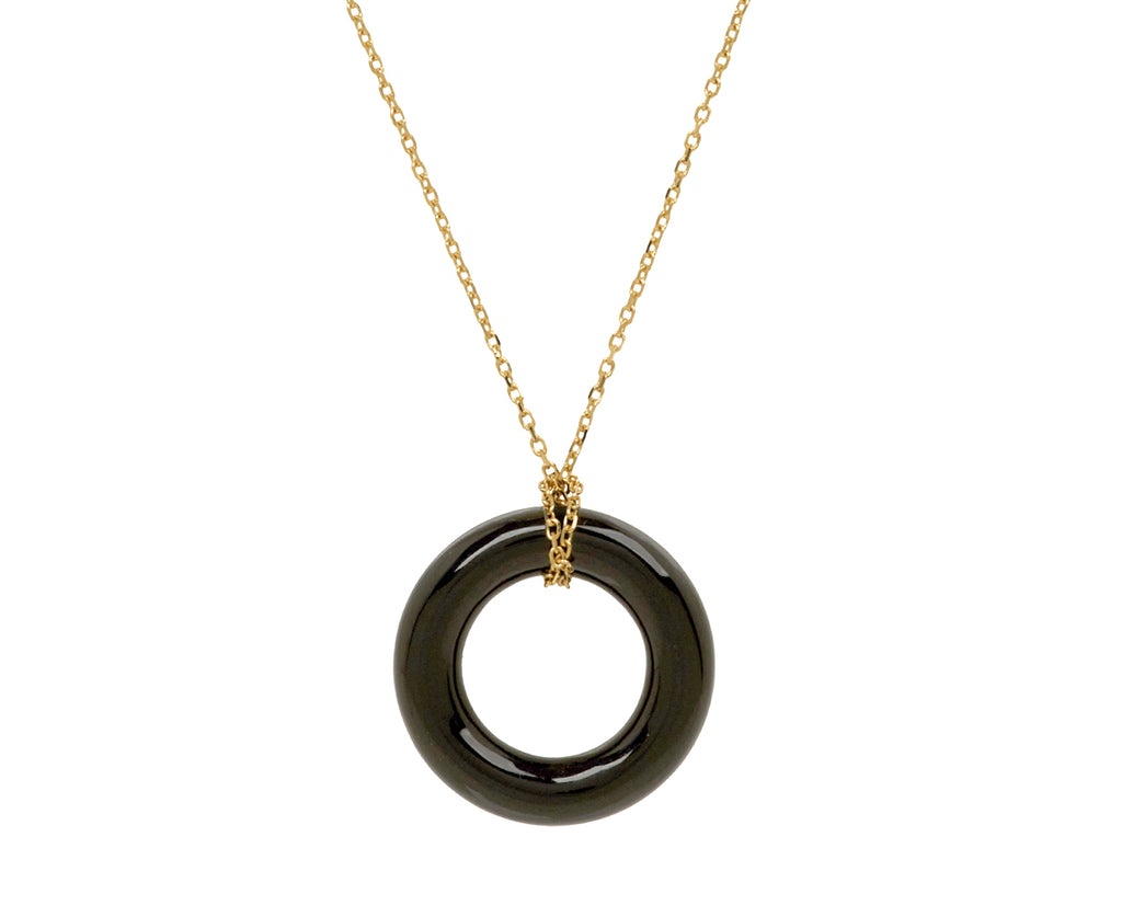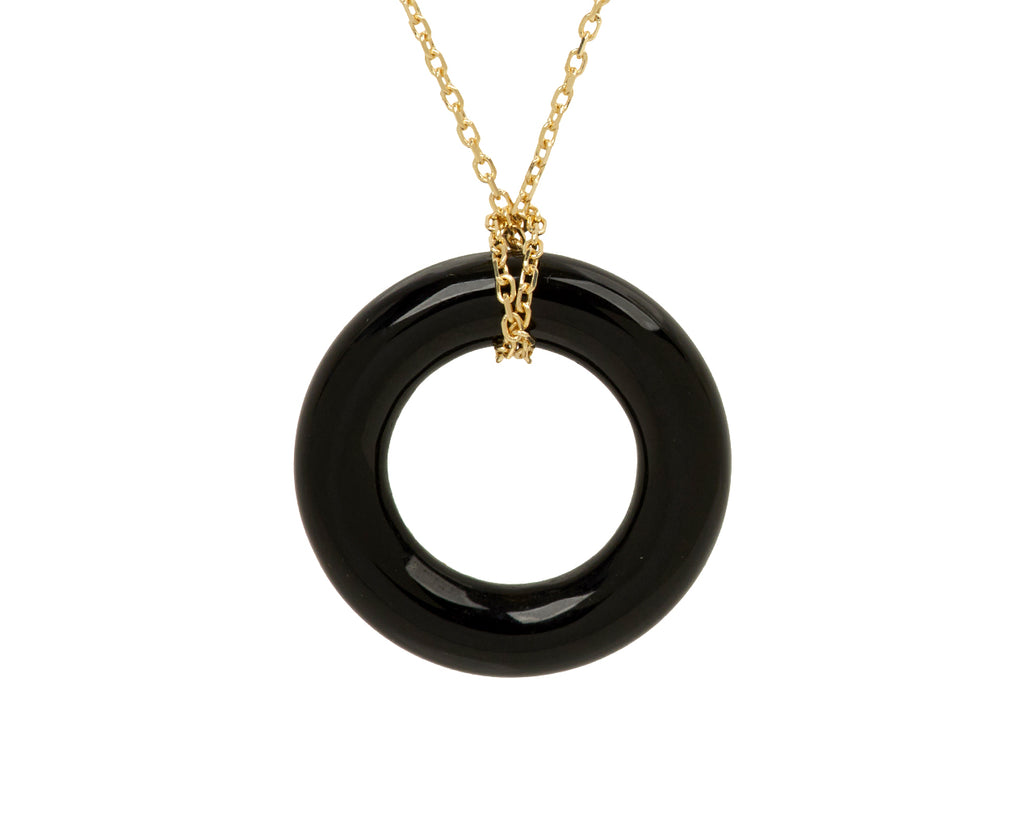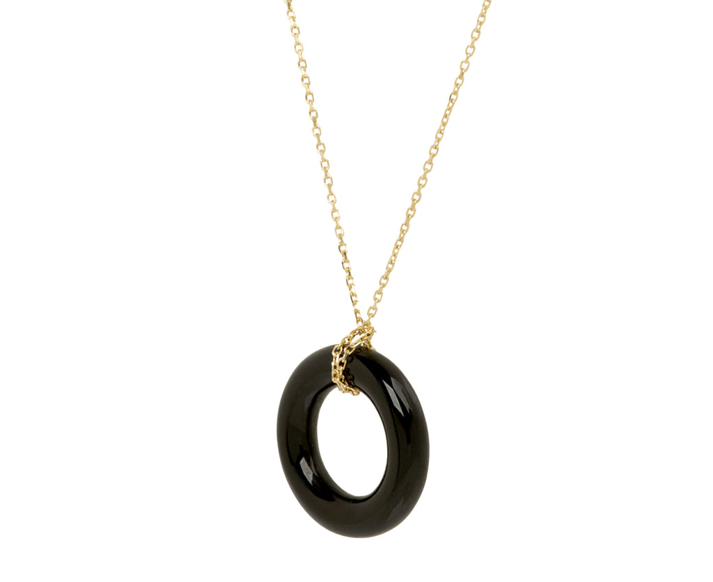 Wear this Mateo necklace as a soft, modern addition to any look. Wrapped in the center of the adjustable 14K yellow gold chain is a smooth black onyx donut. Alone or layered, it adds a subtle sophistication to any look.