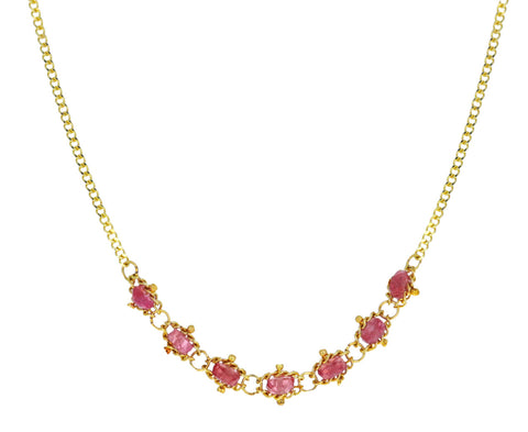 With its warm-toned color story, this Amali necklace possesses a fluid, fabric-like luxe. Stationed in the center of the adjustable 18K yellow gold chain is a segment of faceted pink spinel beads meticulously hand-woven into 18K yellow gold. Worn alone or as an addition to a layered collection, it adds a casual sophistication to your look.