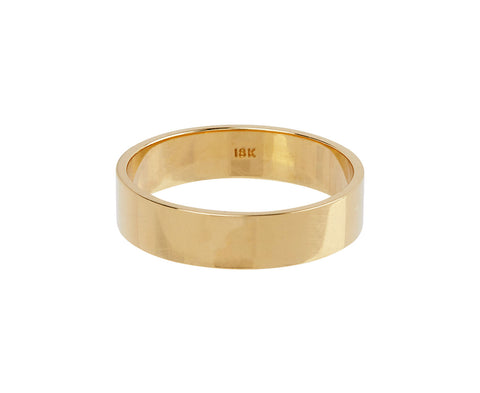On the edgier side of traditional, this Rosanne Pugliese men's band is the perfect, modern expression of a commitment. The polished 18K yellow gold band has a wide surface and flat, square edges.