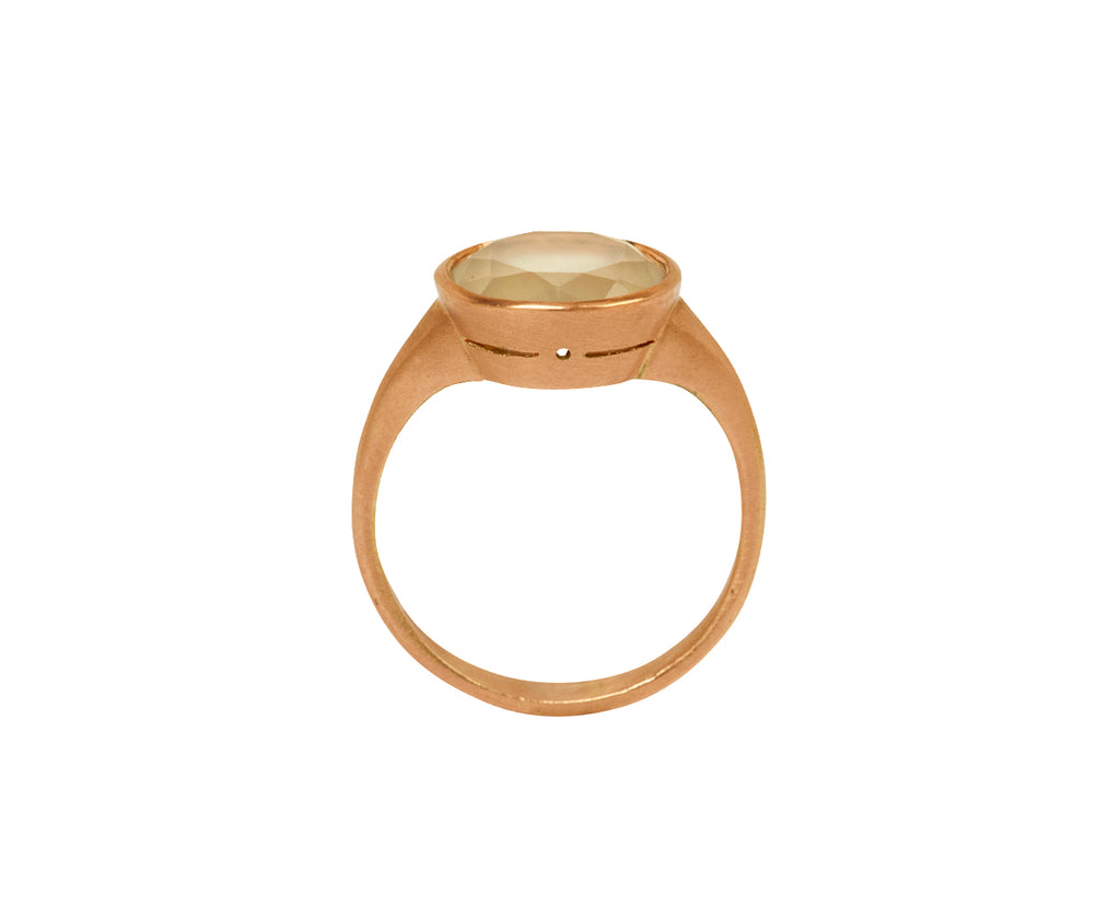 Exuding an elegant simplicity, this captivating Anaconda ring is the perfect balance of modern and minimal. The faceted, round moonstone is encased in a meticulously hand-crafted setting of 9K rose gold and centered on the 9K rose gold band. The timeless, classic design adds to its understated sophistication and statement-making presence.