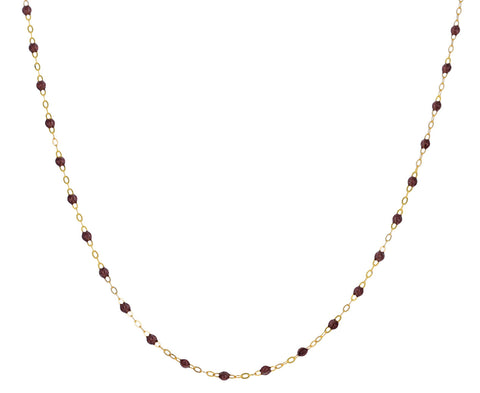 With its fluid movement and warm toned color story, this Gigi Clozeau necklace can easily make its way into your existing necklace layers. The shimmering copper colored resin beads are set along the adjustable 18K yellow gold chain to create the single strand. Alone or layered with your other favorites, it adds a modern, timeless feel to any collection.