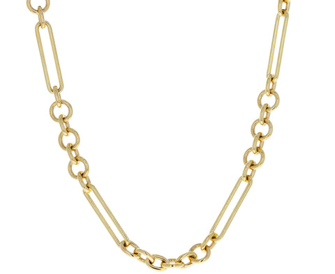 The ultimate piece of jewelry with classic versatility, this Foundrae chain is a modern must-have. The continuous strand of round 18K gold links are broken up by six long, oversized clip links. It fastens with an oversized spring ring clasp and is the perfect backdrop for any of your favorite Foundrae charms.