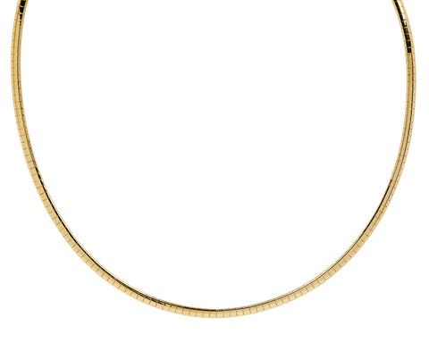 With a modern-meets-retro vibe, this Foundrae chain is a jewelry collection mainstay. The shimmering, 18K yellow gold collar has a slinky, fluid design and closes with an 18K yellow gold push clasp. Statement-making whether worn alone or with one of your Foundrae medallions.