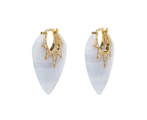 Blue Lace Agate and Diamond Guitar Pick Earrings
