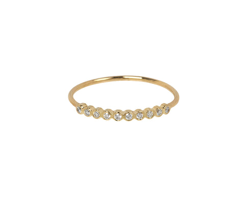 With a classic elegance and modern style, this Zoe Chicco ring is the perfect way to symbolize a wedding, an anniversary, or even just to add to a stacking collection. A series of ten sparking diamonds are set across the top surface of the 14K yellow gold band. Pair it with a diamond solitaire and your set is complete.