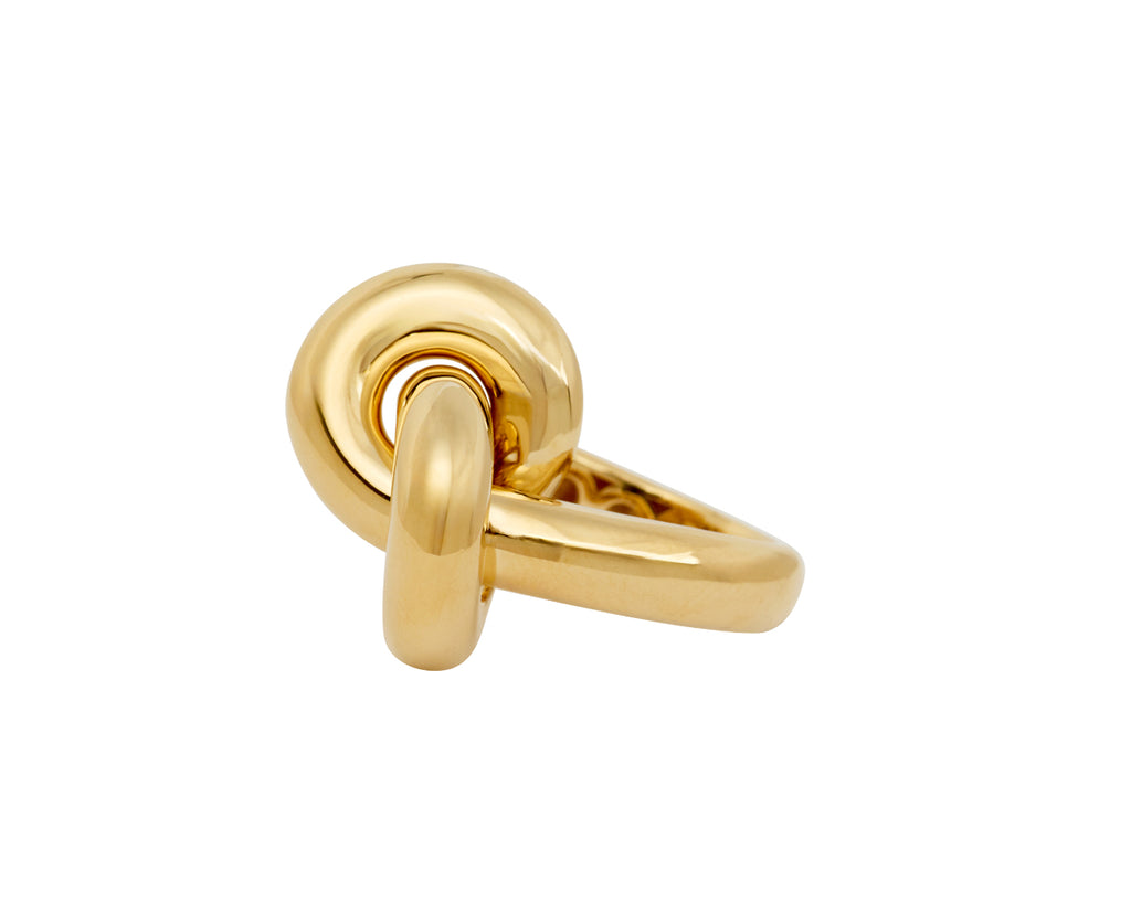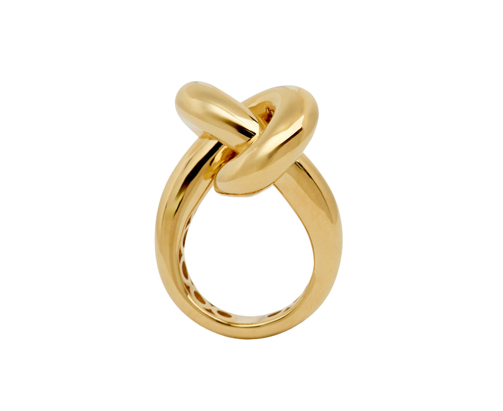 Bold, sculptural and statement-making, this Engelbert ring is all you need to carry an entire outfit. The large, polished 18K yellow gold knot sits at the center of the wide 18K yellow gold band. With its three-dimensional design, this ring is unlike anything you own.