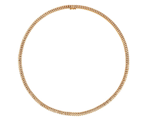 Slinky and sophisticated, this Anita Ko necklace exudes a stunning, retro vibe. Each 18K yellow gold polished link is set with a surface of tiny white diamonds and connects to the next resulting in a soft, flexible strand. Perfect with everything from an open button down shirt to something more formal, this necklace is a style-defining, modern classic.