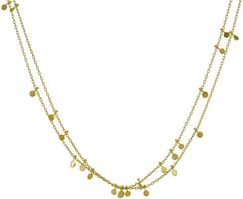 Modern and minimal, this Sia Taylor necklace exudes a playfully feminine elegance. An airy composition of hand fabricated 18K yellow gold dots are arranged along the delicate 18K gold double chain to create a necklace with slinky sophistication. Wear this alone, or layer it with your other favorites.