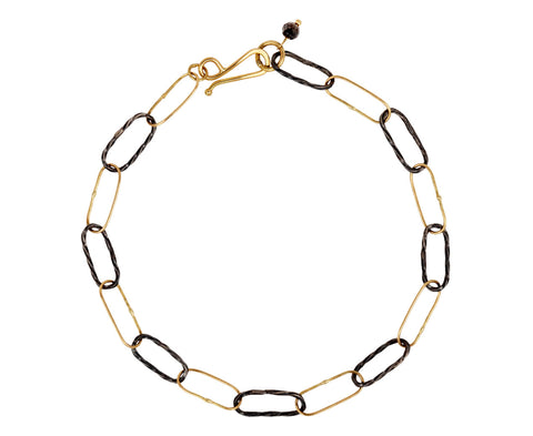 total length : 7" : oxidized sterling silver and 18K yellow gold