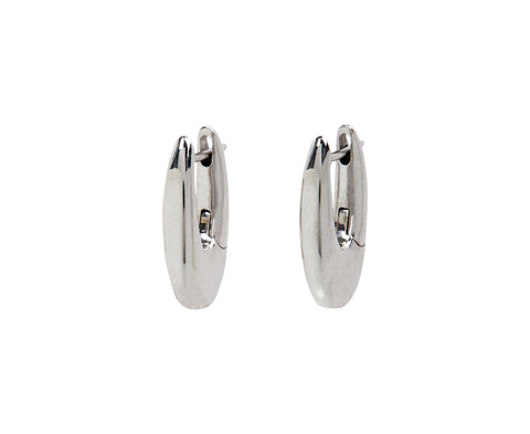 With their subtly tapered, hinge design and timeless elegance, these Melissa Kaye hoops will quickly become your everyday go-to pair. The solid hoops of 18K white gold open with the center hinge and fasten with the locking ear posts. Push up gently on the ear wire to unlock the hoops.