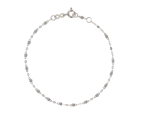 Captivating in its sparkle and neutral color palette, this Gigi Clozeau bracelet exudes a quiet luxury. Set along the 18K white gold chain are tiny drops of translucent, clear resin. Alone or layered with your other favorites, it adds a modern, timeless feel to any collection.